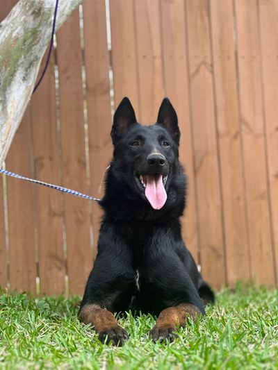 If you are interested in adopting an adult male Belgian Malinois, we have our beloved Ozzlo. He is a gentle giant. He has been great around our children and other dogs (no matter the size). He is an awesome stud, always gets the job done and has produced beautiful puppies every time. Ozzlo has completed basic obedience training, leash trained and is crate trained. He will cuddle with you or go on a 5 mile walk no questions asked! Ozzlo is a rare full black coat with fawn stockings and white spot on his chest. He is protective over his family and property, but means no harm to anyone. Ozzlo is 3 years young and would make a great addition to any active family or a stud provider. Contact us for any inquires.
